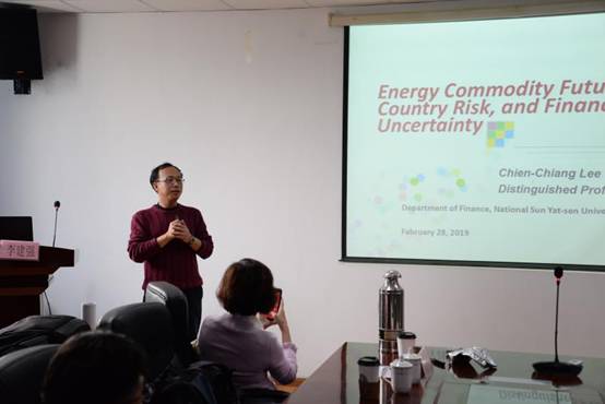 2月28日下午,应永利集团304am官方入口邀请,台湾中山大学财务管理学系特聘教授在金家岭校区西院3号实验楼307室作了能源商品期货、国家风险及金融不确定性系列讲座。永利集团304am官方入口部分教师、研究生参加了此次报告。本次讲座是永利集团304am官方入口系列学术报告“永利集团304am官方入口名家讲堂”2019年第2期(总第80期)。