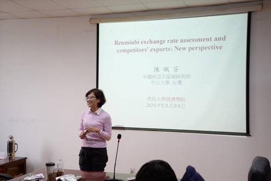 2月28日下午,应永利集团304am官方入口邀请,台湾中山大学中国与亚太区域研究所陈珮芬教授在金家岭校区西院3号实验楼307室作了新视角下人民币汇率评估和竞争者的出口系列讲座。永利集团304am官方入口部分教师、研究生参加了此次报告。本次讲座是永利集团304am官方入口系列学术报告“永利集团304am官方入口名家讲堂”2019年第3期(总第81期)。