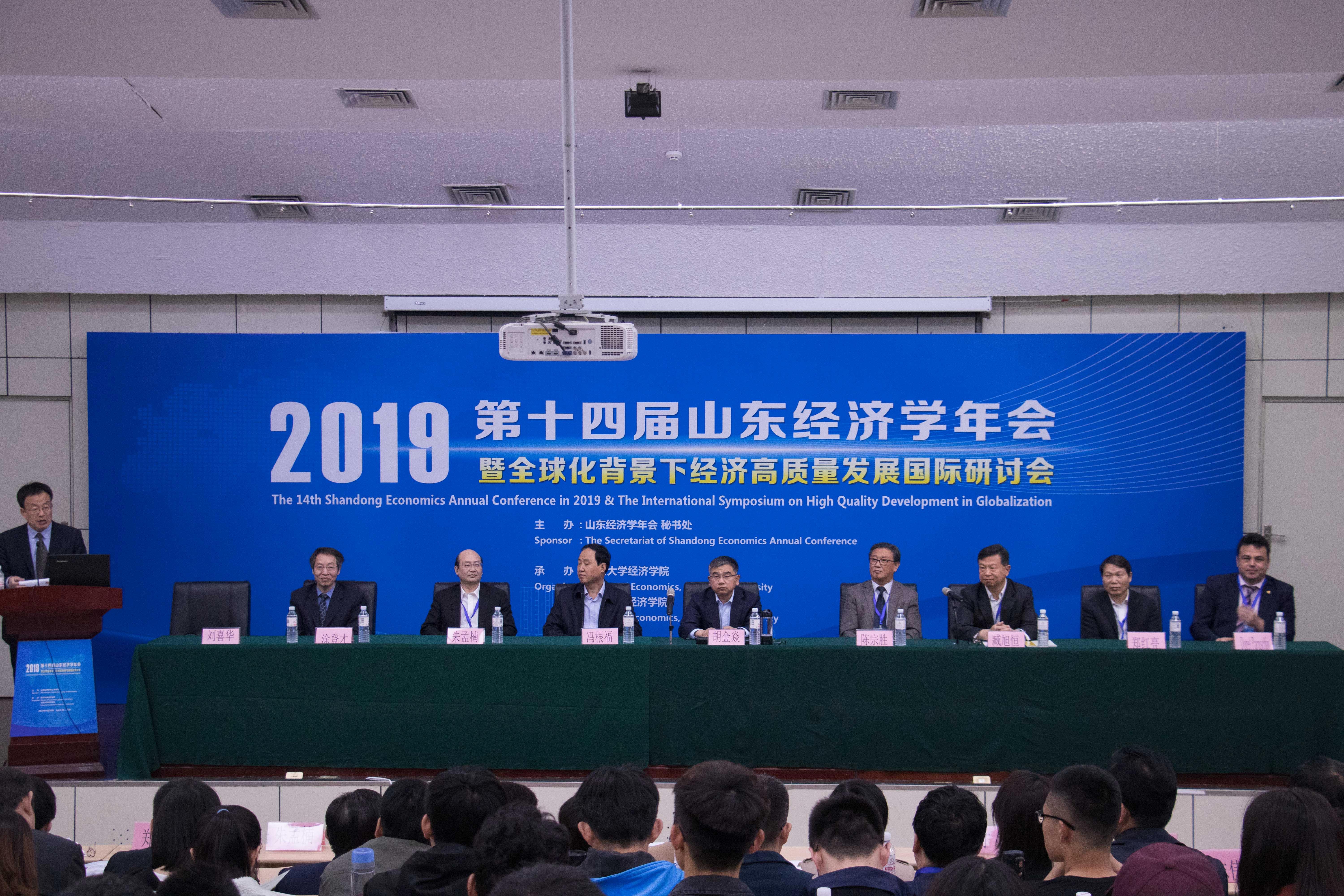 4月20日上午,由山东经济学年会秘书处主办,永利集团304am官方入口和山东大学永利集团304am官方入口承办,“2019第十四届山东经济学年会暨全球化背景下经济高质量发展国际研讨会”在公司召开。