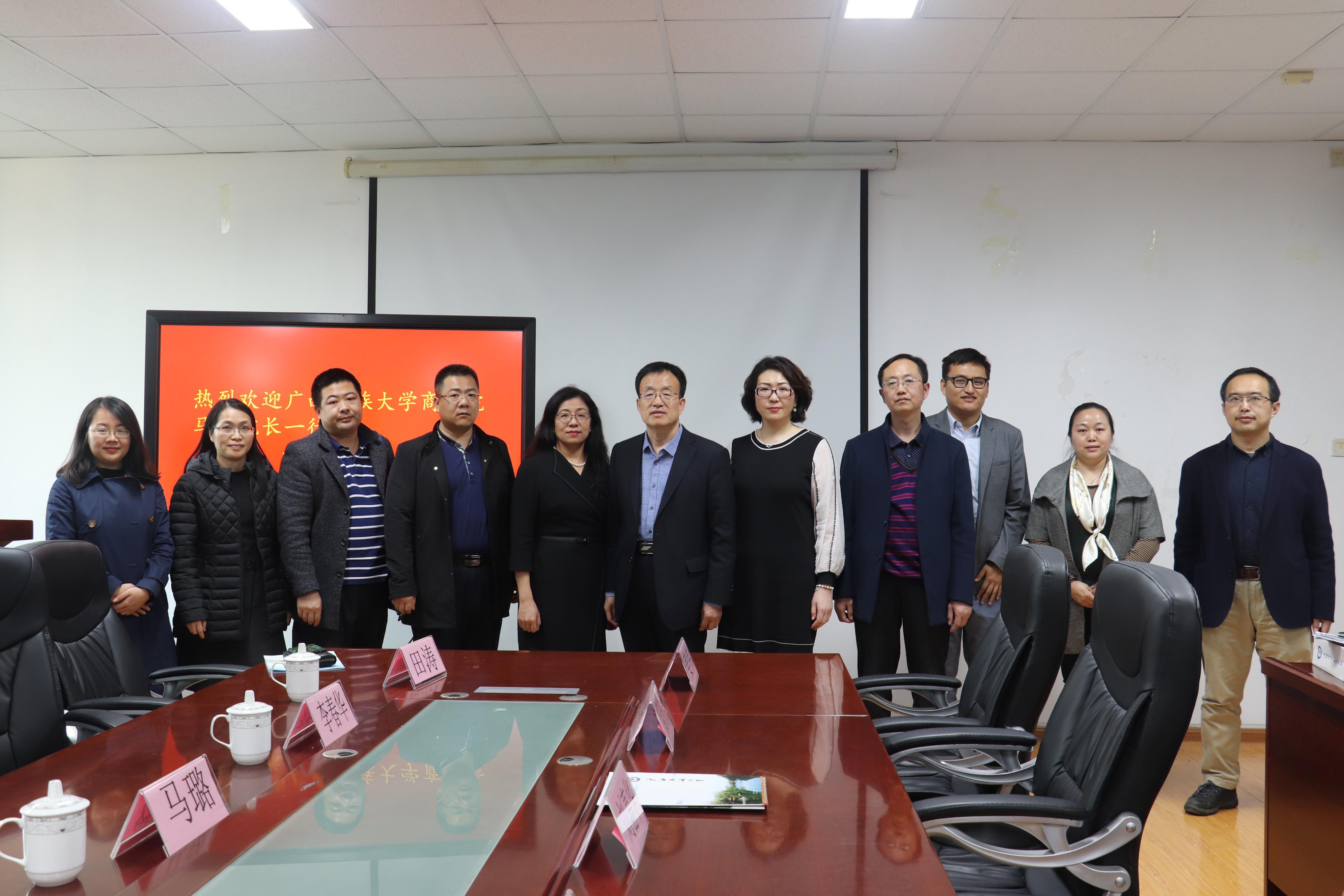 4月18日下午,广西民族大学商学院经理马璐等一行7人来公司调研交流。永利集团304am官方入口经理、党委副书记刘喜华,党委副书记王海荣,副经理陈东景、吕学梁,金融系主任姜伟,本科教学办公室主任孙延鹏参加了交流会。