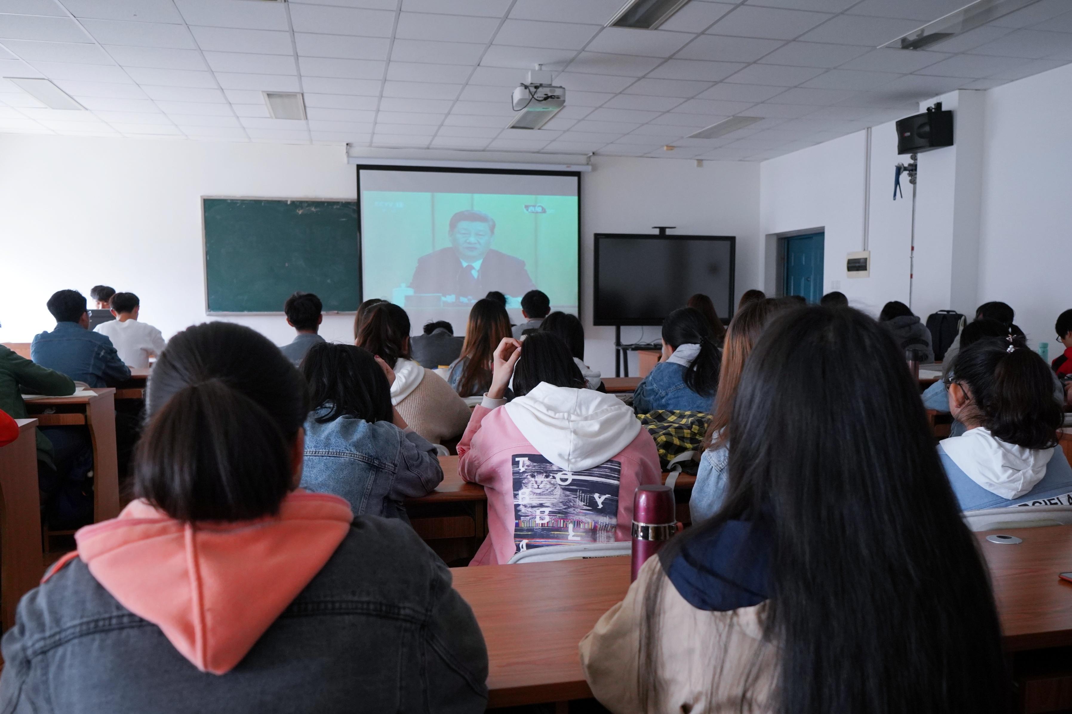 会上,与会师生共同观看了纪念五四运动100周年大会直播,习近平总书记在大会上习近平强调,五四运动以全民族的力量高举起爱国主义的伟大旗帜,激发了追求真理、追求进步的伟大觉醒。对新时代中国青年提出6点要求,同时为青年取得的成就和成绩点赞。