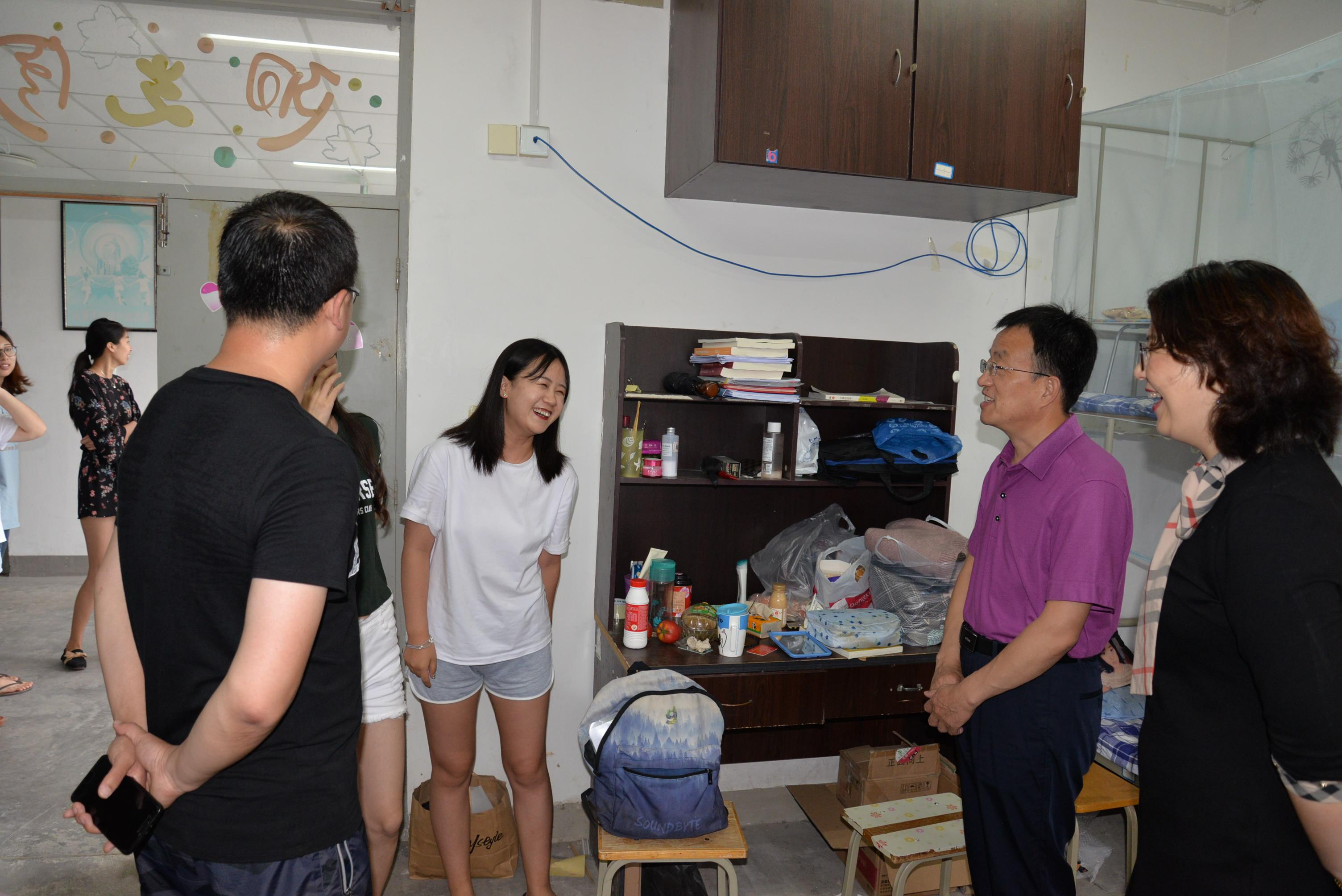 6月28日下午,芊芊细雨,瑟瑟清风,永利集团304am官方入口经理刘喜华、党委副书记王海荣和2015级辅导员李冉一同走访毕业生宿舍,与毕业生面对面接触,心贴心交流。老师们听取了他们对学院发展建设的意见和建议,询问他们对于未来的展望与规划,向他们表达了离别之际的不舍并给予了真挚的鼓励和祝福。走访临近结尾时,员工们坚持把老师们送到楼下,在门口与老师依依惜别,有些同学还为此流下了感动的眼泪。