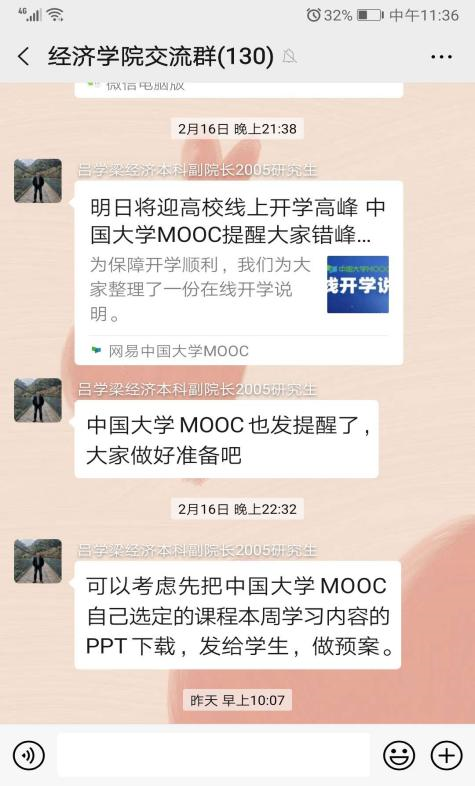 教学管理和学工管理教师也积极行动起来,落实线上教学管理工作流程,组织员工们通过多种形式掌握线上学习工具;调查了解员工们遇到的线上学习困难和问题,及时沟通协调解决;组织班级通过各种主题方式落实好上课出勤情况和听课纪律,及时反馈课堂教学效果,加强与任课教师互动。同时,学院也加强宣传引导,学院微信交流群中每天都会围绕线上教学进行工作指导和互动交流,学院官微也推送了《专属青大经院课表来啦》《2020年春季学期永利集团304am官方入口本科教学员工注意事项》,以及不同线上工具学习指南等内容,便于师生全方面跟进教学要求。