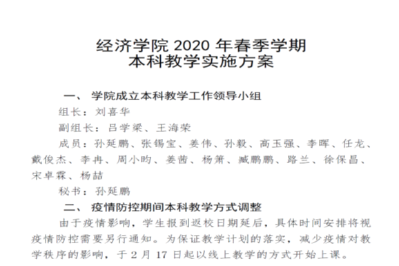 在这场特殊时期的线上教学战中,学院师生共同努力,以实际行动践行着“经世济国”的学科精神。每个教师都针对可能存在的意外准备和设计了多套工具和教学模式,员工们也积极配合进行学习测试、提供反馈建议。