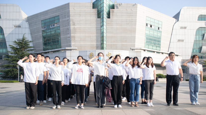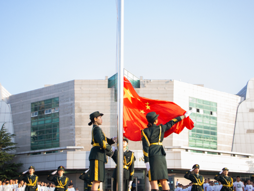 9月30日清晨,21级新生辅导员,21级新生,在金家岭校区图文中心门口前集合,参加升国旗仪式。国歌响起,在场全体师生庄严肃立,目送国旗冉冉升起。脑海中,是革命先烈舍生取义的画面,是开国大典激动人心的画面,是万丈高楼平地而起的画面……主题朗诵:“请党放心,强国有我!”再次将全场气氛点燃,雷鸣般的掌声一次次响起,21级新生们已完全被诗歌的深情感染。这次朗诵激励着21级新生争做有志气,有骨气,有底气的新时代青年。
