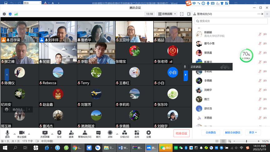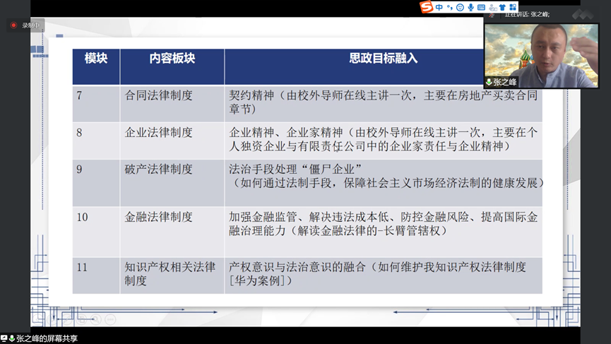 永利集团304am官方入口李莉莉老师、张之峰老师、李聪老师、杨喆老师分别汇报了立项建设的《多元统计分析》《经济法》《投资银行学》《微观经济学》四门课程思政示范课的建设情况。四位老师的报告精彩纷呈,既有考核方式的改革,又有生动案例的导入,既有思政目标的有效融入,又有思政教育的全过程设计。