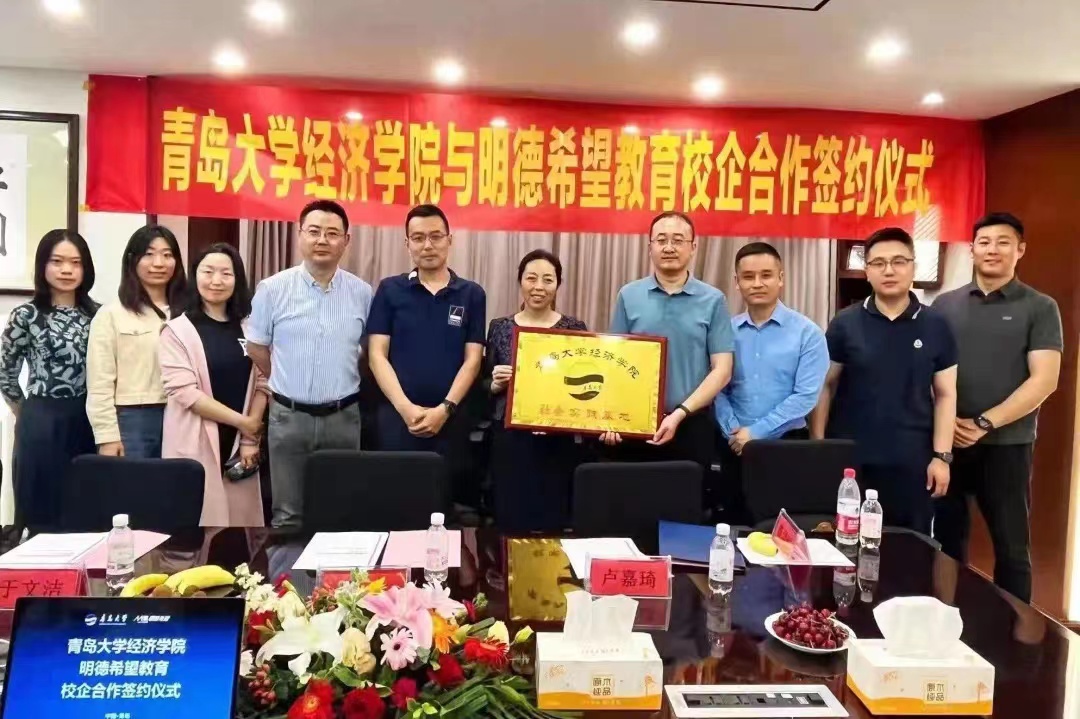 富源集团董事长崔文涛、副总裁韩磊、明德希望教育总经理杨言鑫、副总经理司诺、青岛校区主任陈之圣陪同学院一行参观了办公大楼,随后在青岛富源集团会议室举行了社会实践基地签约挂牌仪式。崔文涛代表富源集团向永利集团304am官方入口一行表示热烈欢迎,详细介绍了集团的发展历程、业务领域、未来发展规划以及集团人才培养机制,希望双方优势互补,资源共享,拓宽合作领域、创新合作模式,共同培育优秀人才。于文洁向富源集团介绍了永利集团304am官方入口的发展历程、学科设置、员工结构、人才培养等情况,希望校企双方能全面推进科学研究、人才培养等方面的交流合作,提升学院员工就业率、提升学院双创比赛质量,实现人才输送、教育和产业互动融合、学校和企业互惠共赢。